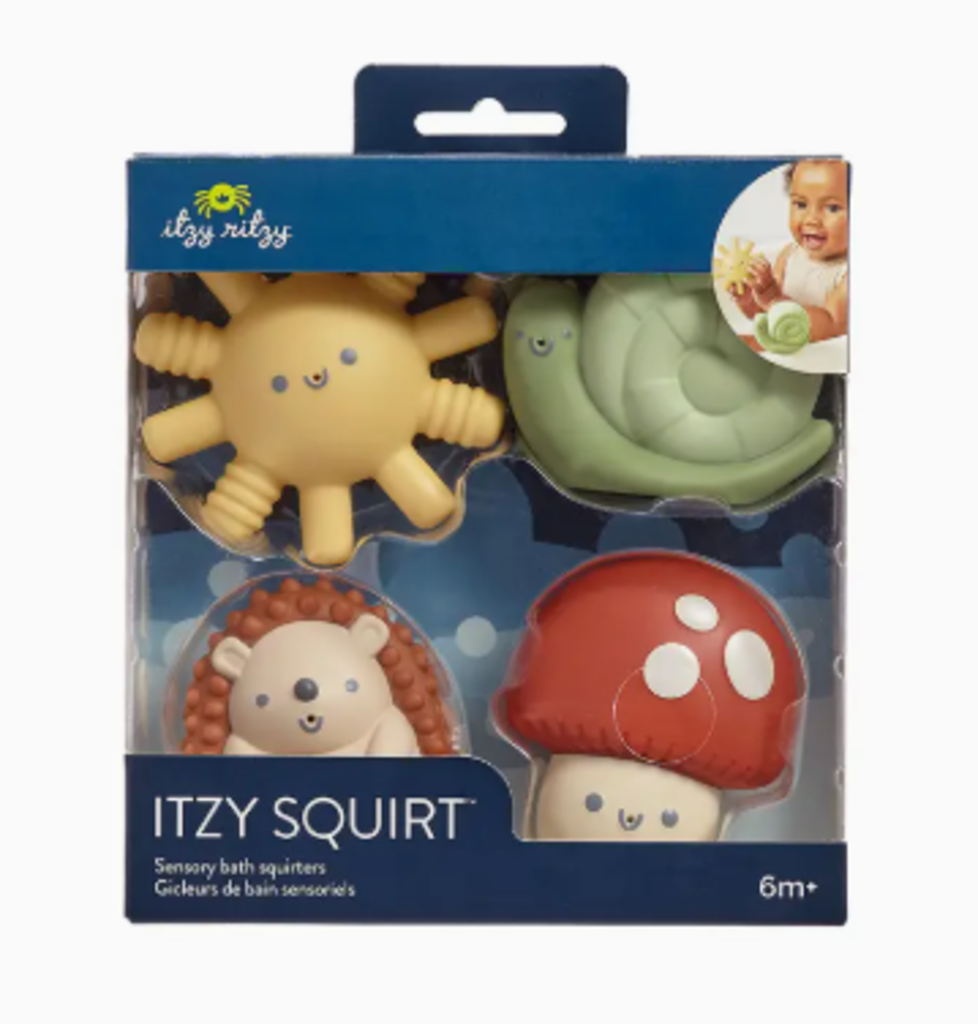 Squeezable Squirties for Bath Time Bliss! Have some good clean fun with Itzy Squirt™ bath toys. These soft, squeezable water-squirting characters encourage motor skill development and are great for creating endless bath time adventures!