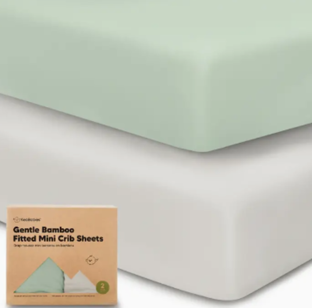Set your baby up for a comfortable and relaxing nap and play time in their play playard with the Fitted Mini Crib Sheets. Featuring the softest organic material, which is highly breathable and temperature-regulating, keeping your baby comfortable. Comes beautifully packaged in a kraft gift box. - 2-Pack Organic Bamboo Viscose Mini Crib Sheets - Fits standard pack and play mattresses, play pens, and playards sized at 38" by 26" and height of 3” to 8”. - Made with ultra-soft and highly breathable viscose from bamboo - Easy to put on and remove by SnugFit elastic band - Machine washable and dryer friendly