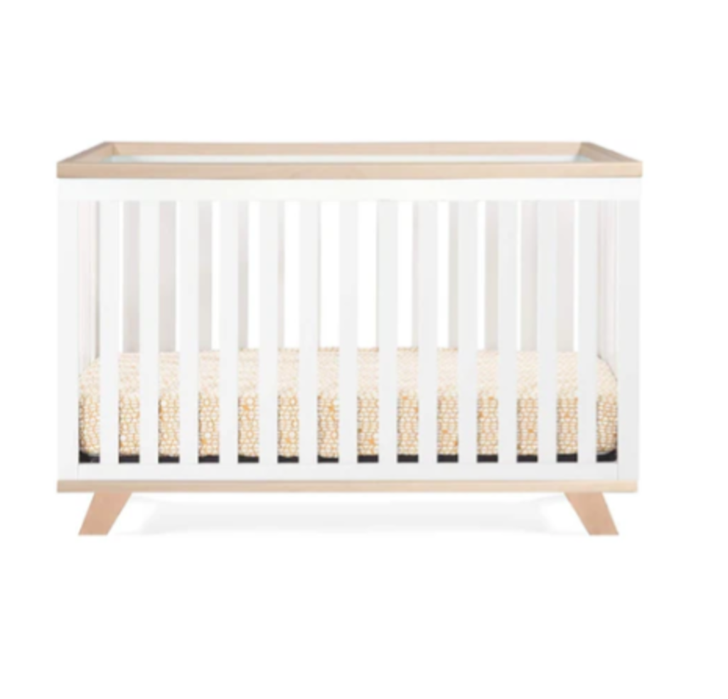 The Cleo 3-in-1 Baby Crib brings timeless midcentury modern design into your nursery. It showcases trendy tapered feet, a white and natural colour combination and a symmetrical silhouette that looks smart in the center of a room or against a wall. Designed to grow with your child, the convertible crib features a mattress platform that adjusts to four different heights and converts to a daybed and toddler bed (toddler rail sold separately). • 4 Adjustable mattress heights to adapt to growing child (crib mattress sold separately) • Converts to a daybed and toddler bed • Solid wood design with non-toxic finish • Toddler guard rail sold separately • Pair this crib with a matching Concord Baby dresser or change table